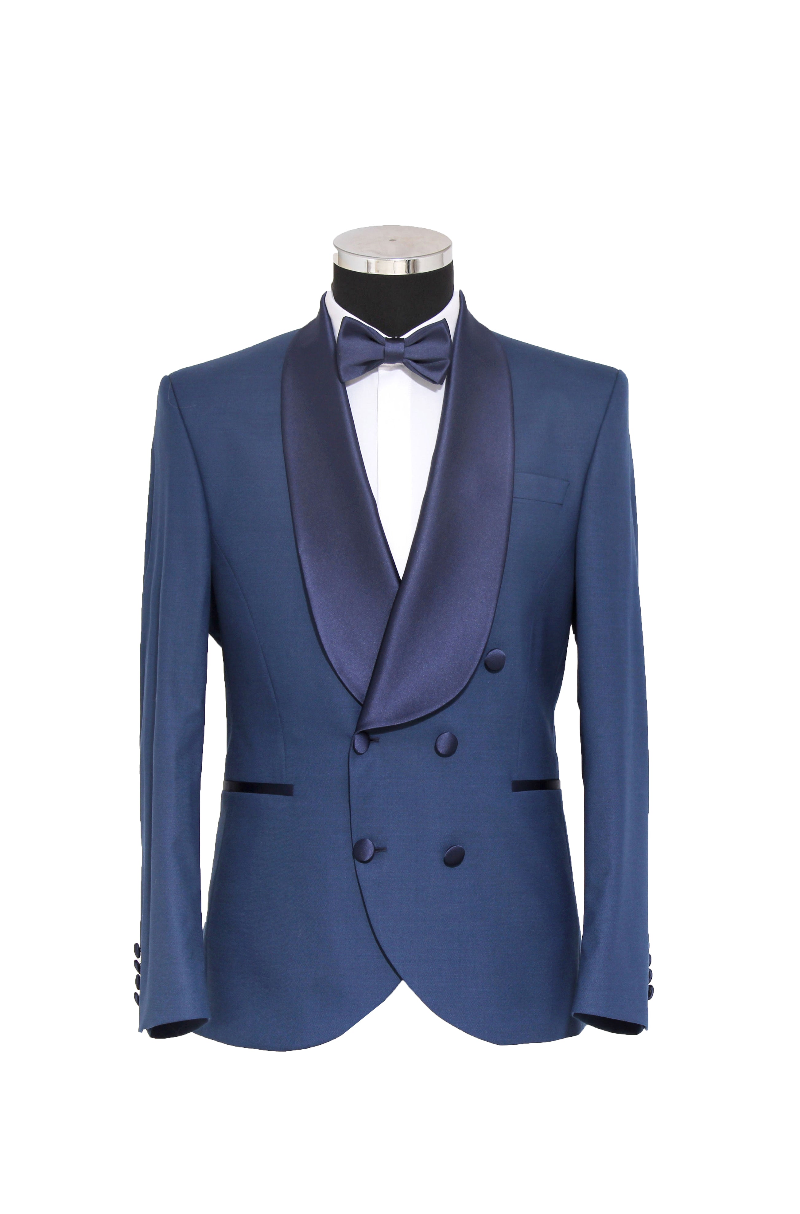 Abito bluette doppiopetto con sei bottoni e collo a scialle largo. Bottoni in raso e papillon coordinato completano il look. I pantaloni slim fit confermano uno stile raffinato e contemporaneo. Un abito estremamente versatile, perfetto per ogni evento speciale. Per chi fa dello stile una scelta di vita.