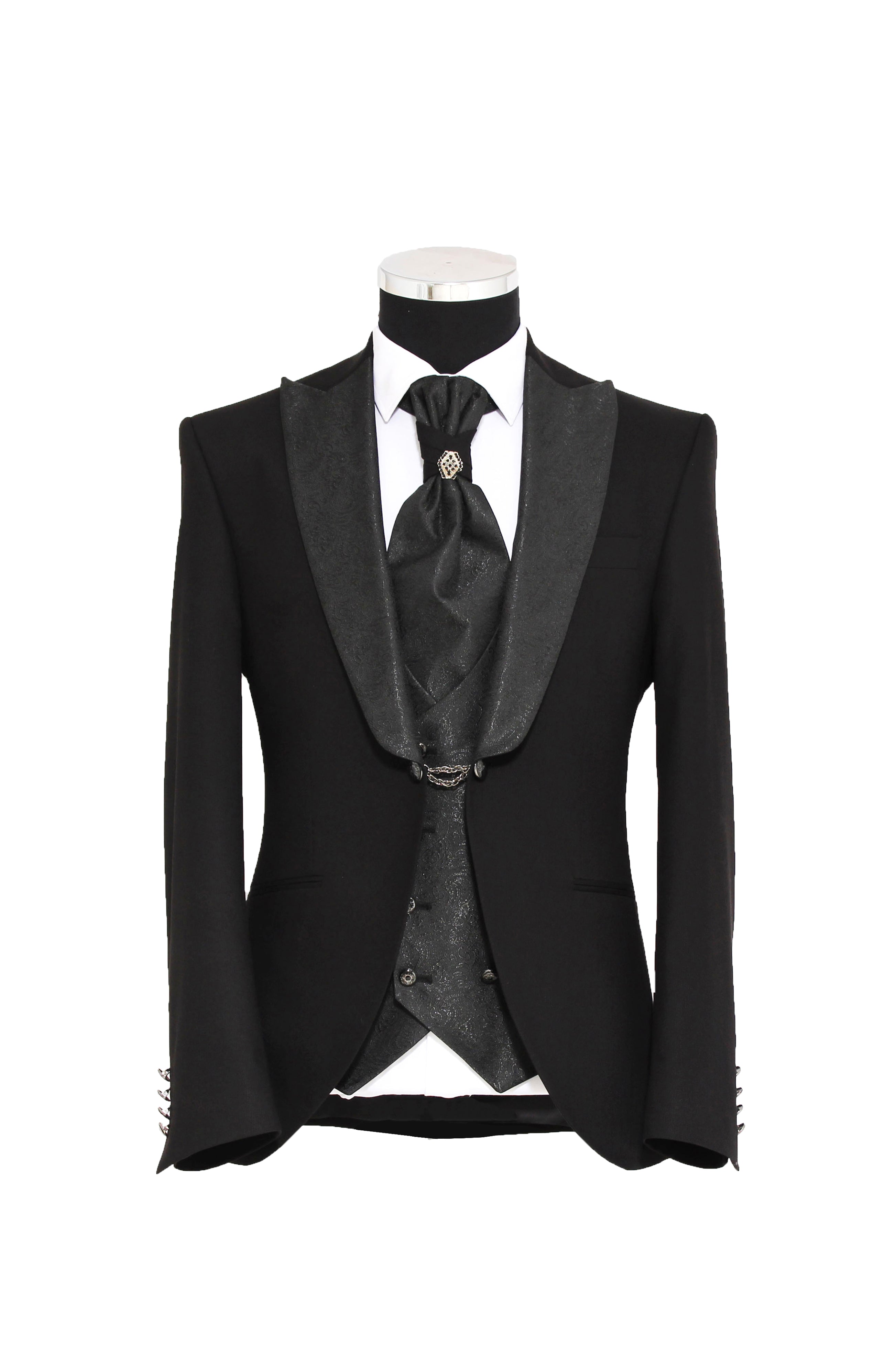 • Il completo è composto da Giacca, Pantalone, Gilet e Plastron con Spilla