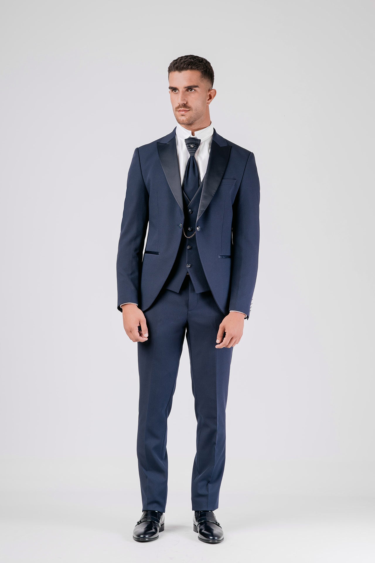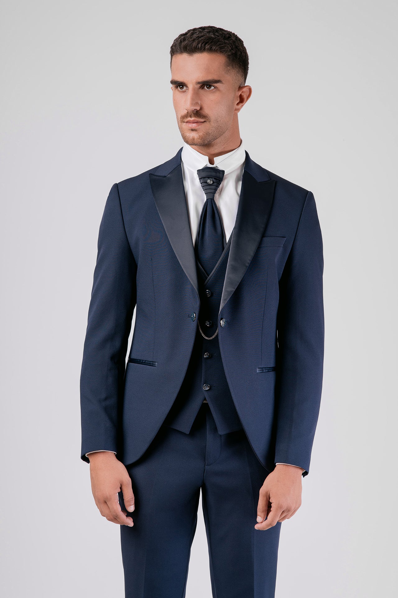 -Il completo è composto da Giacca-Pantalone-Gilet e Cravattino