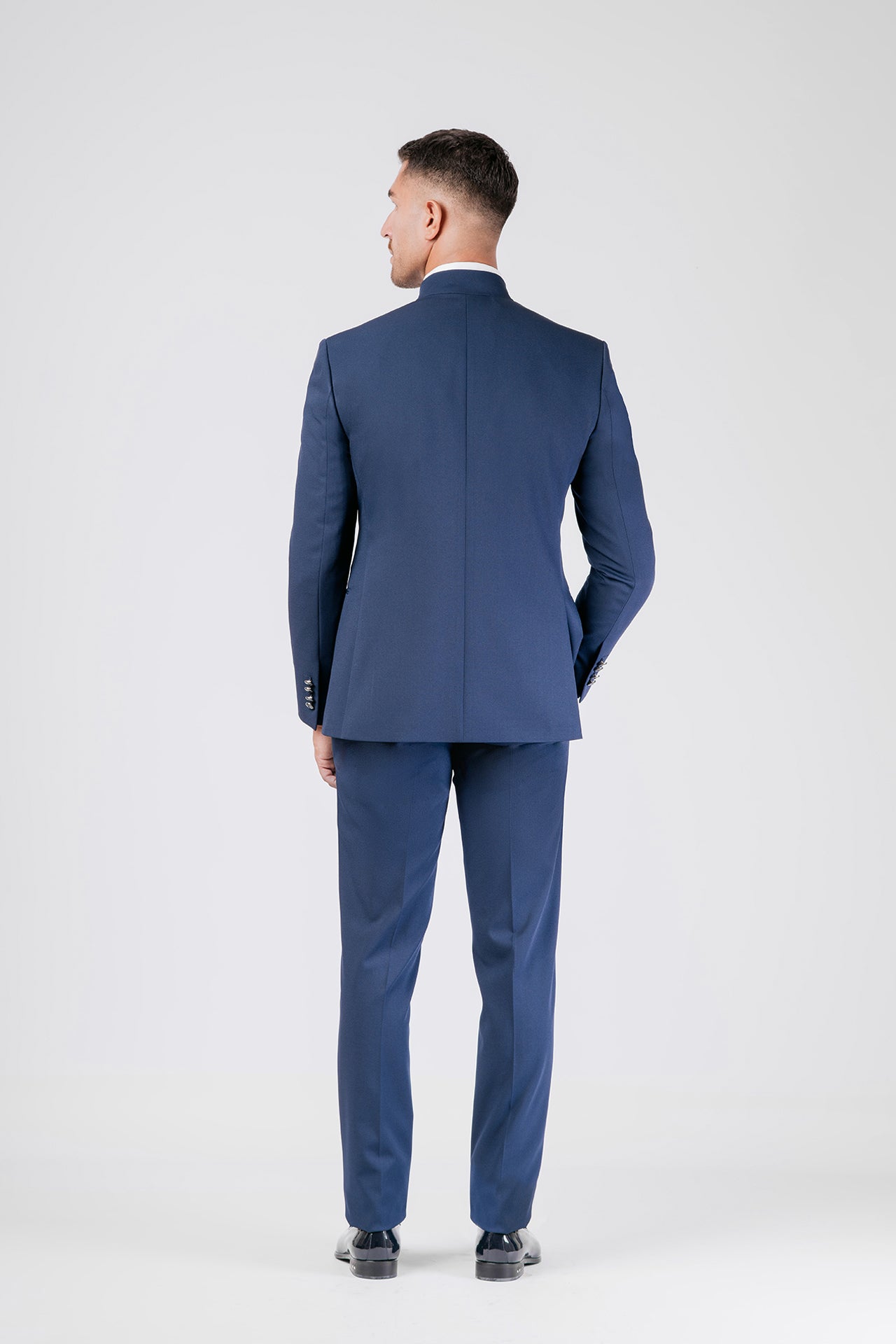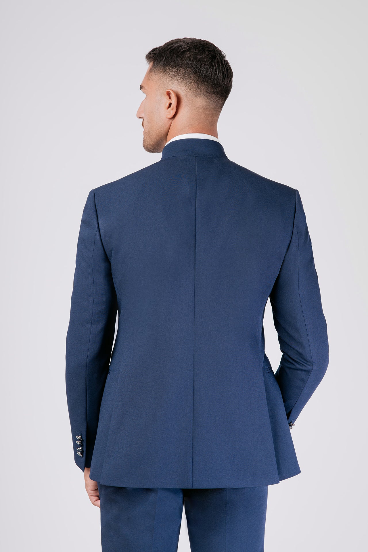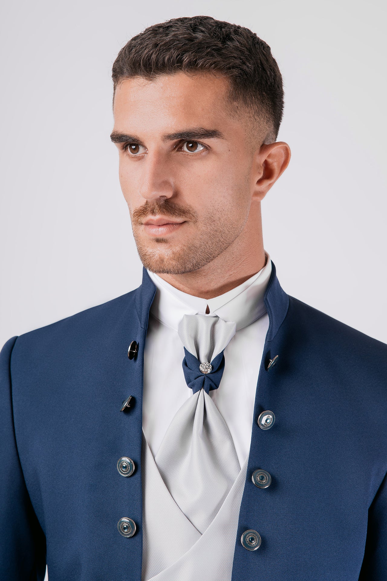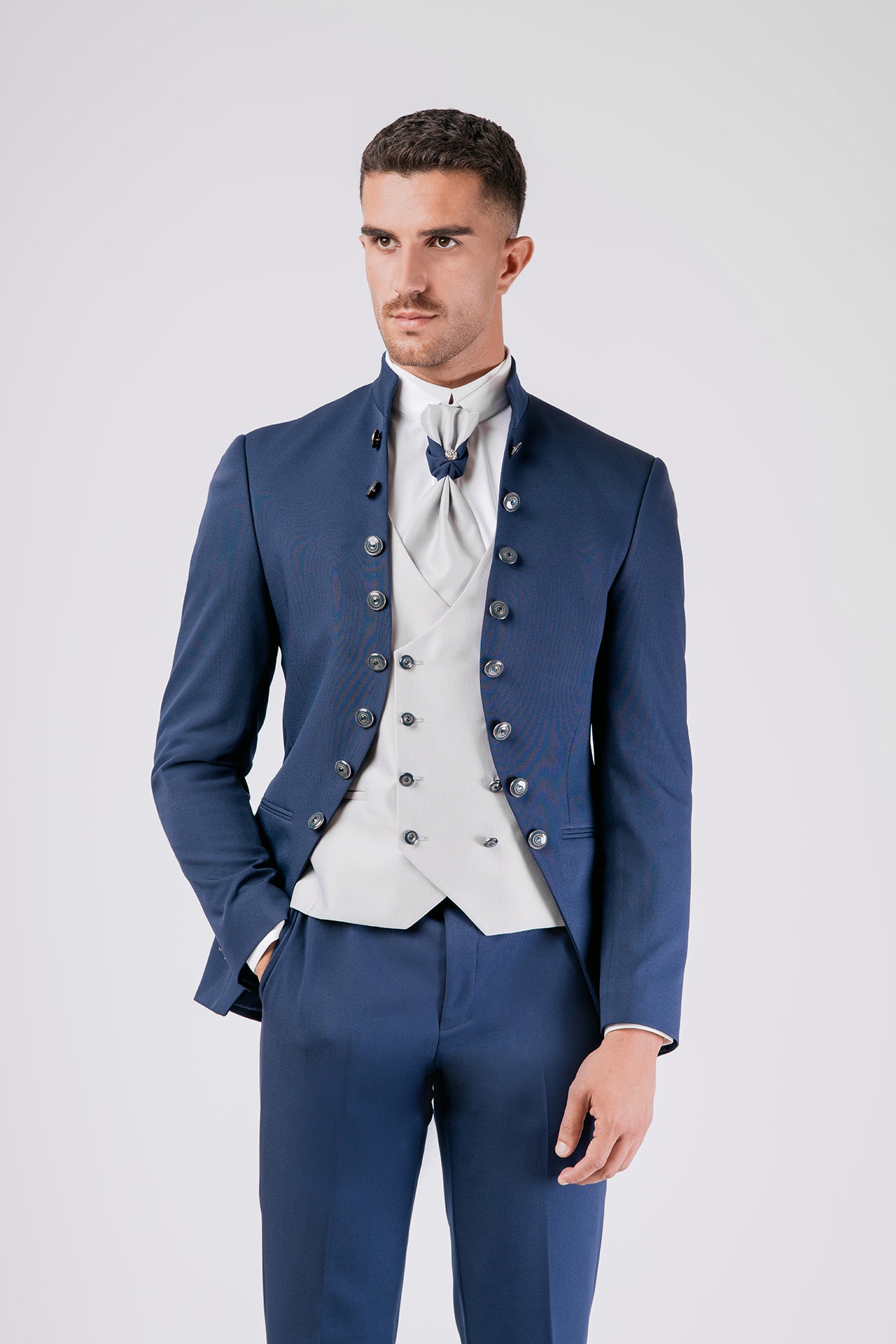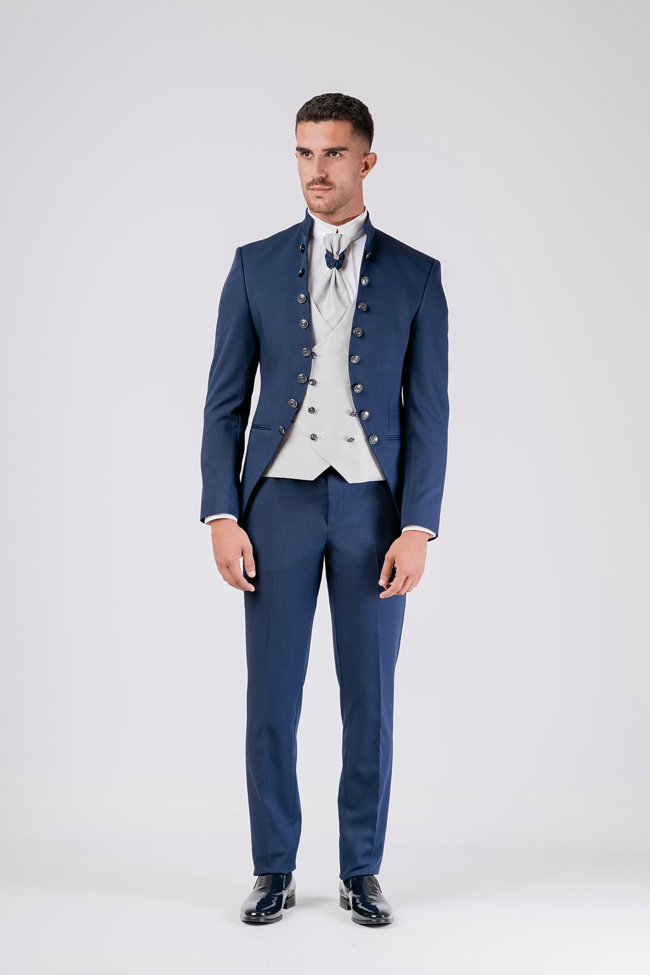 Abito da sposo "Shard" collo coreano blu con Bottoni gioiello sul collo