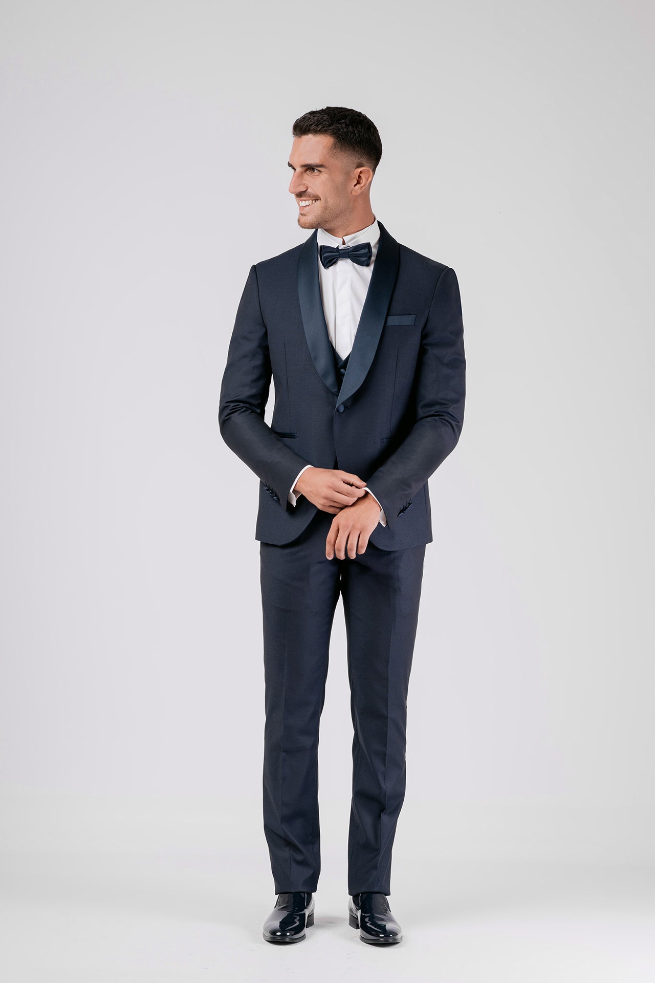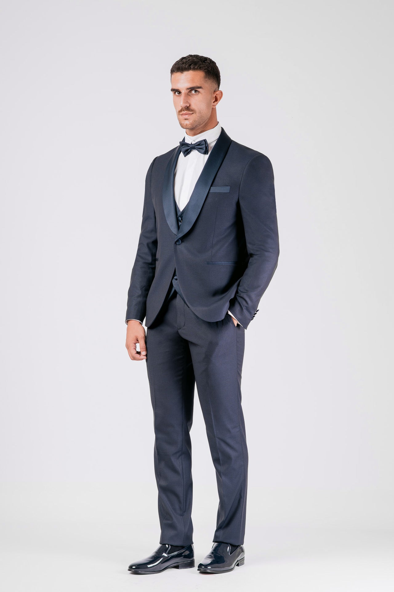 Il completo è composto da Giacca, Pantalone, Gilet e Papillon