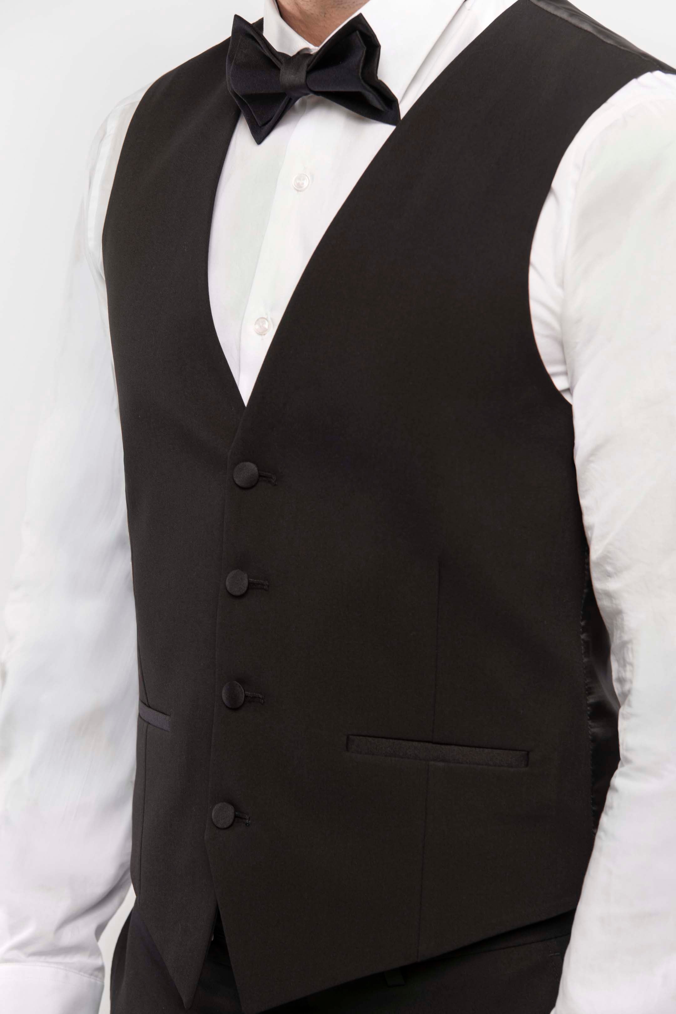 • Il completo è composto da Giacca, Pantalone, Gilet e Papillon