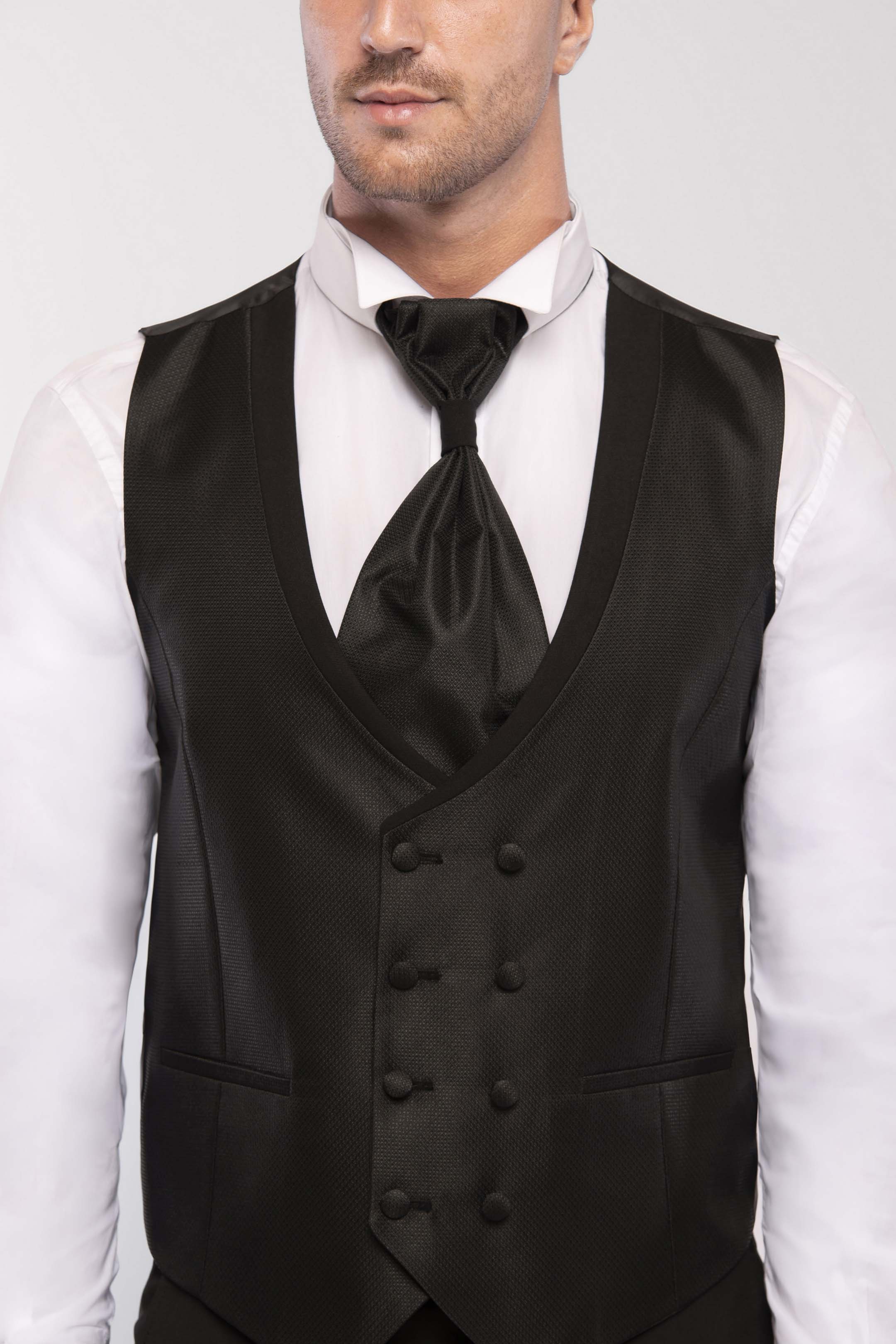 Il completo è composto da Giacca, Pantalone, Gilet, Plastron e Spilla