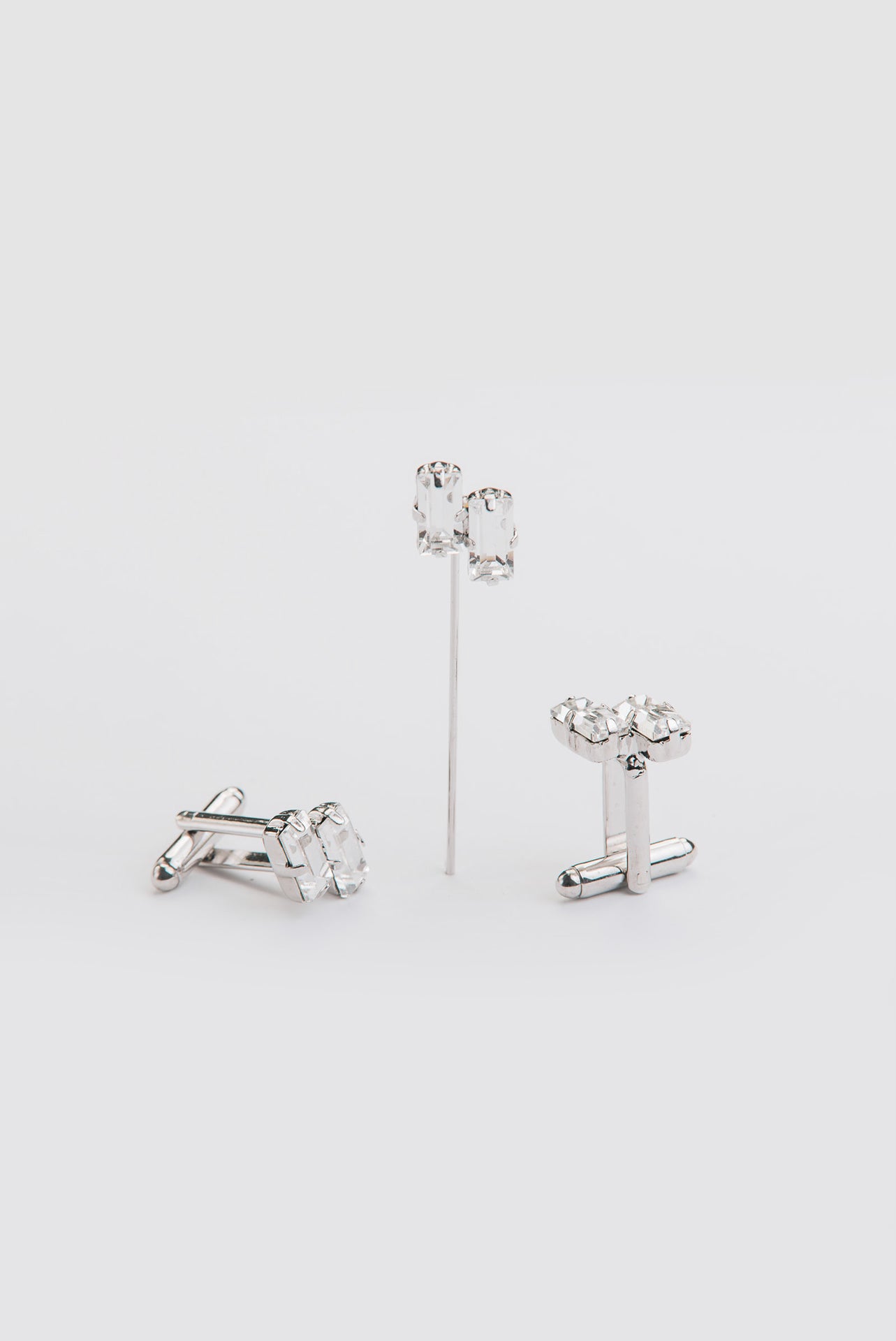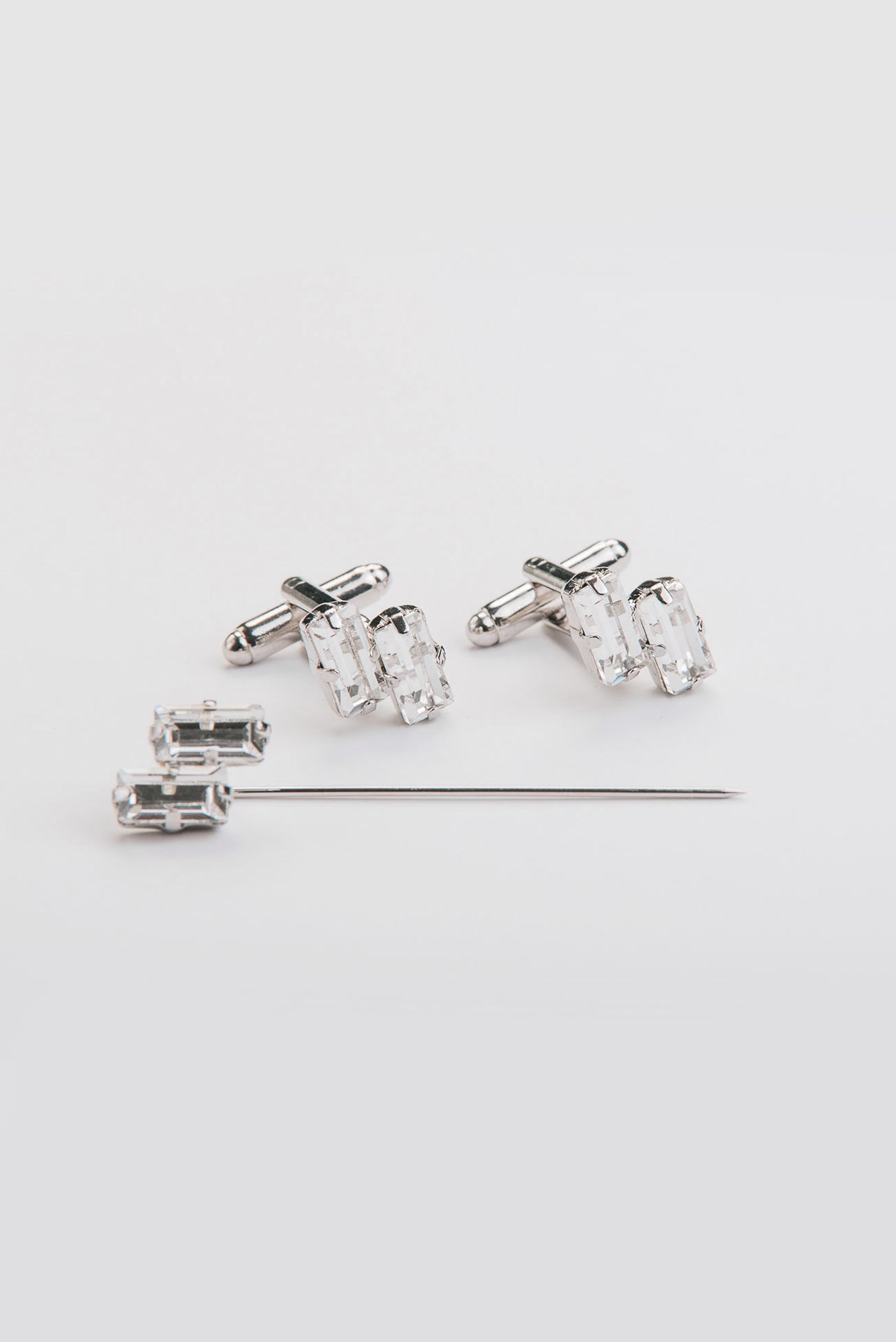 Combo "BAGUETTE" gemelli+spilla con pietra Swarovski®