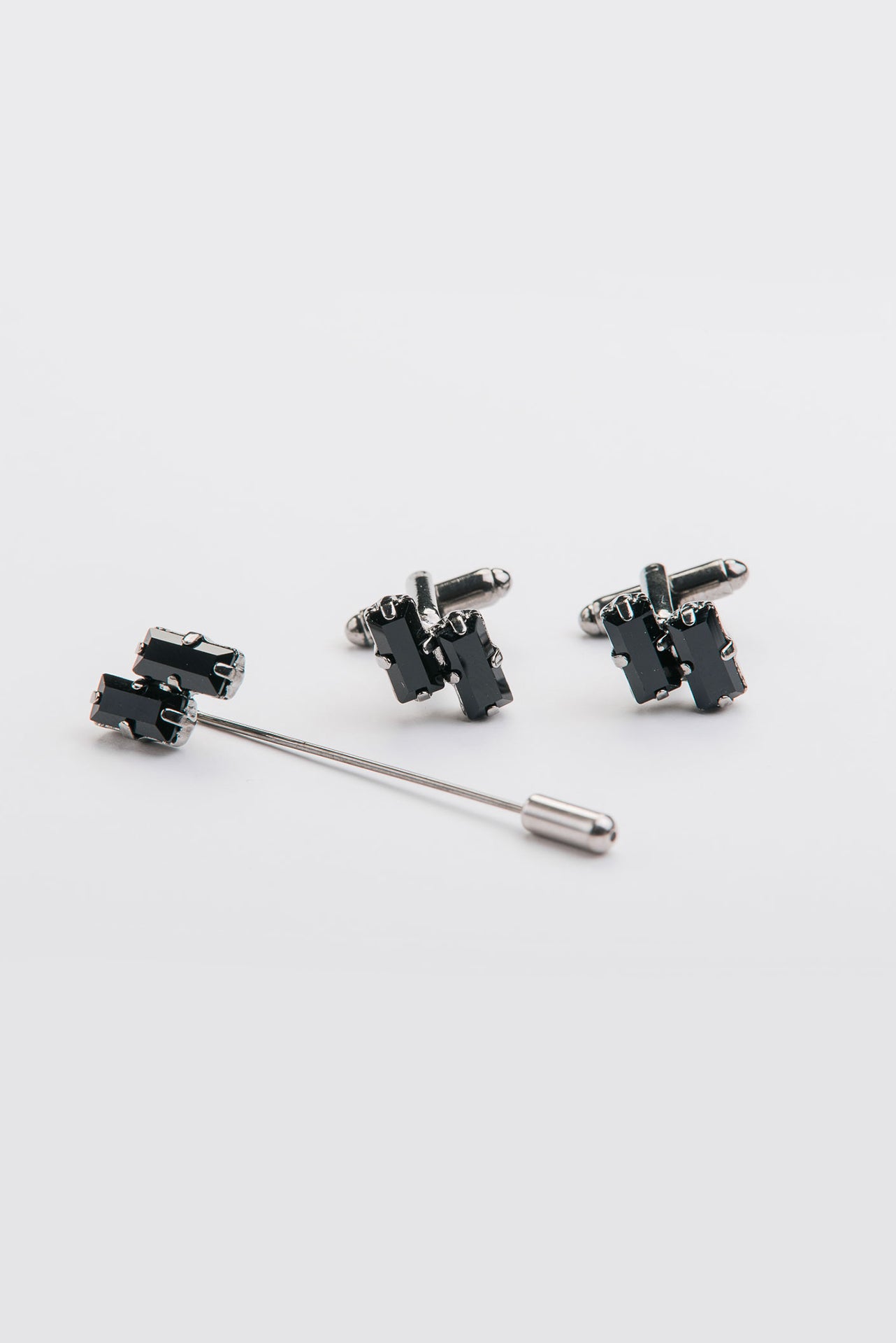 Combo "BAGUETTE" gemelli+spilla con pietra Swarovski®