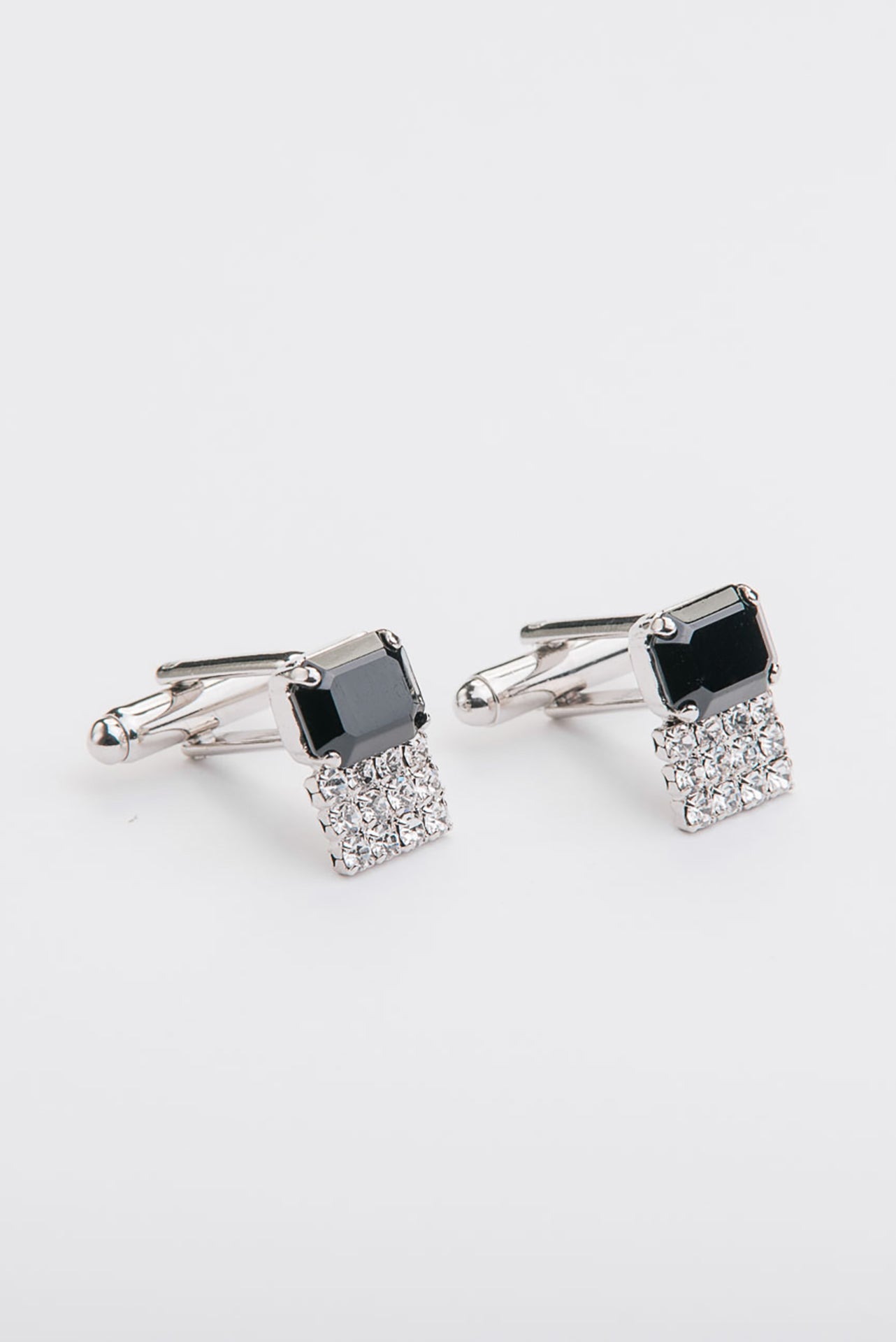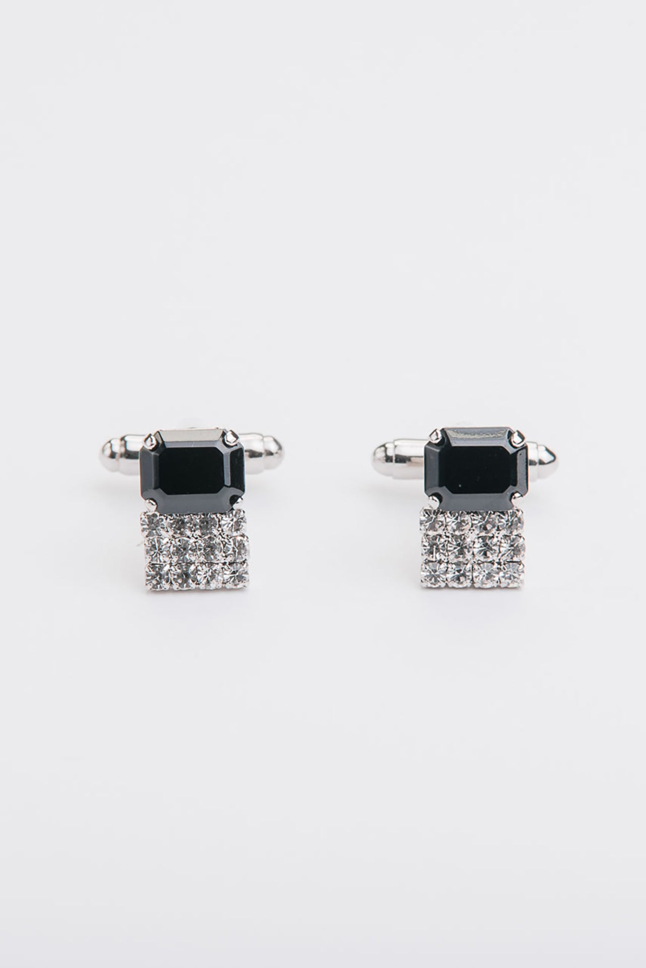 Gemelli fermapolsi in acciaio inossidabile con pietra dal taglio ottagonale nera e dettagli swarowsky.