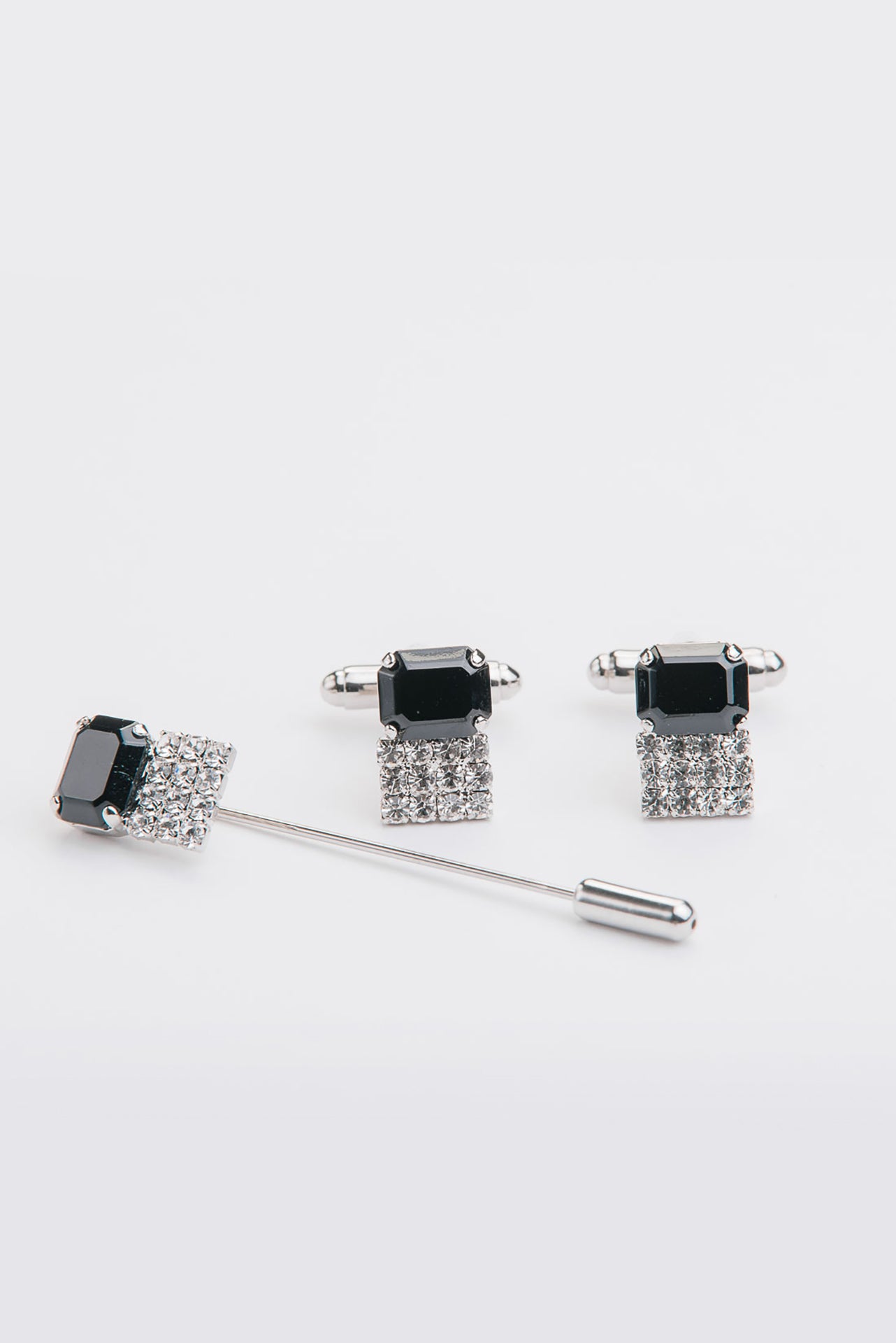 Combo "DOUBLE" gemelli+spilla con pietra Swarovski®