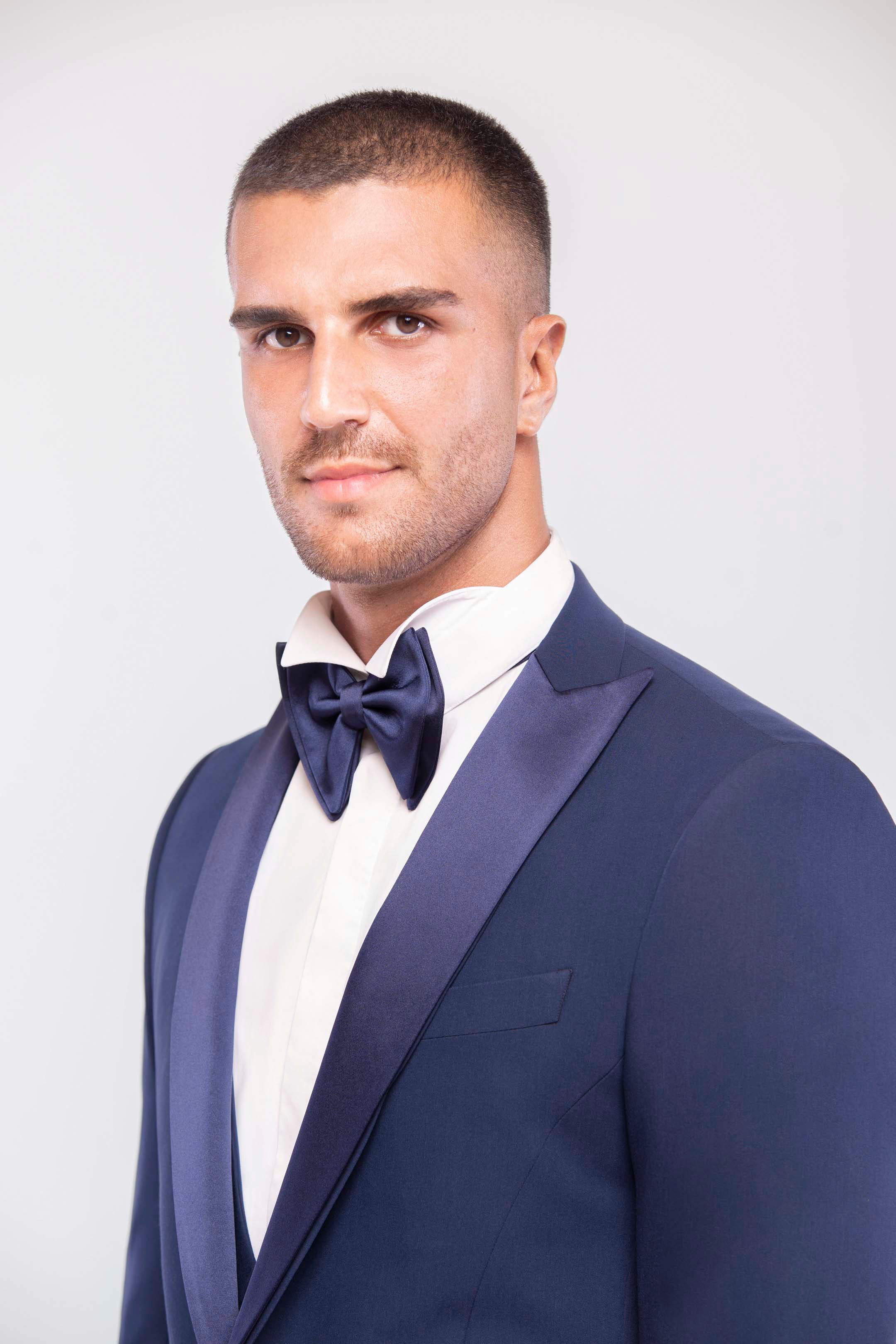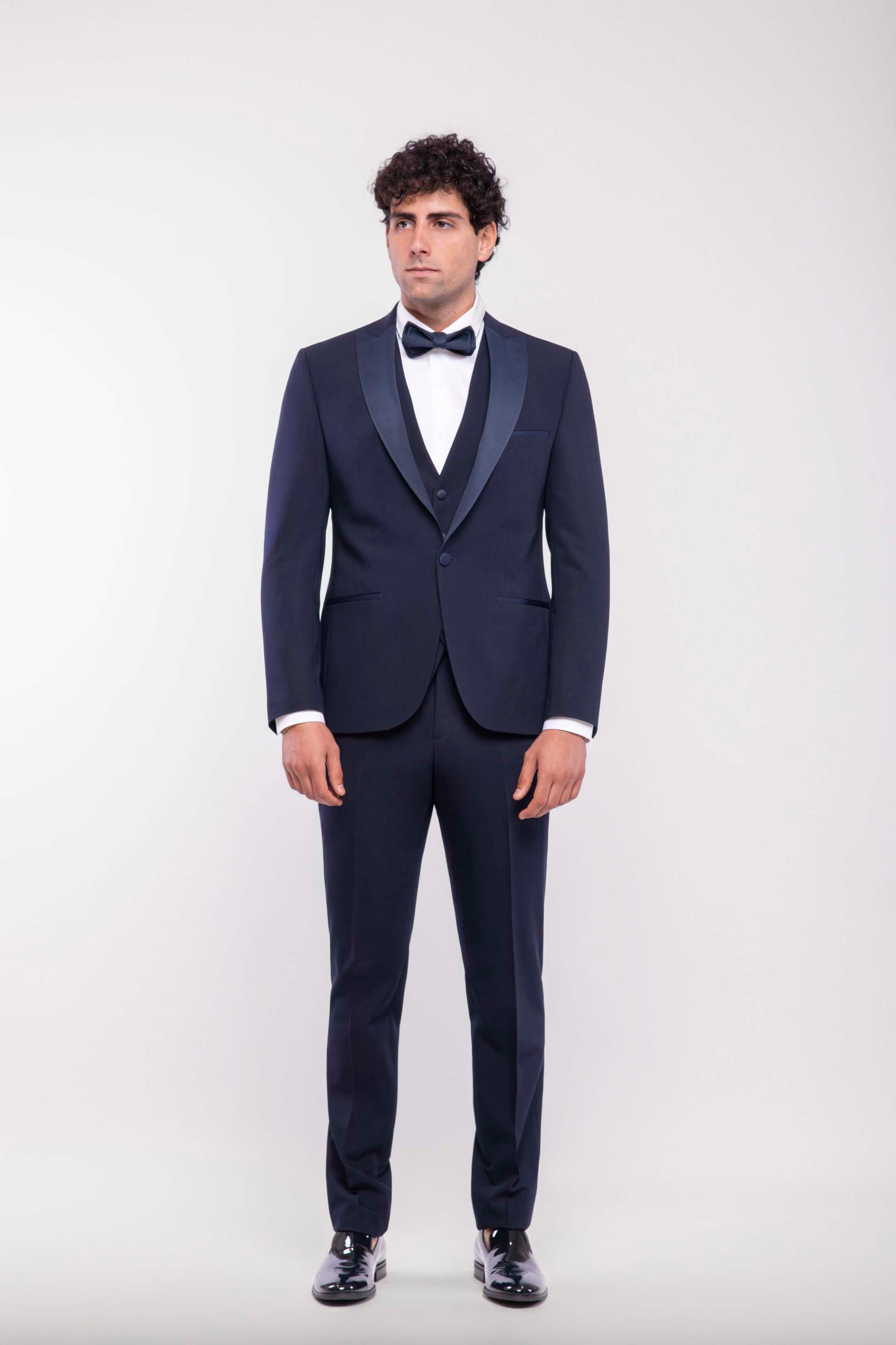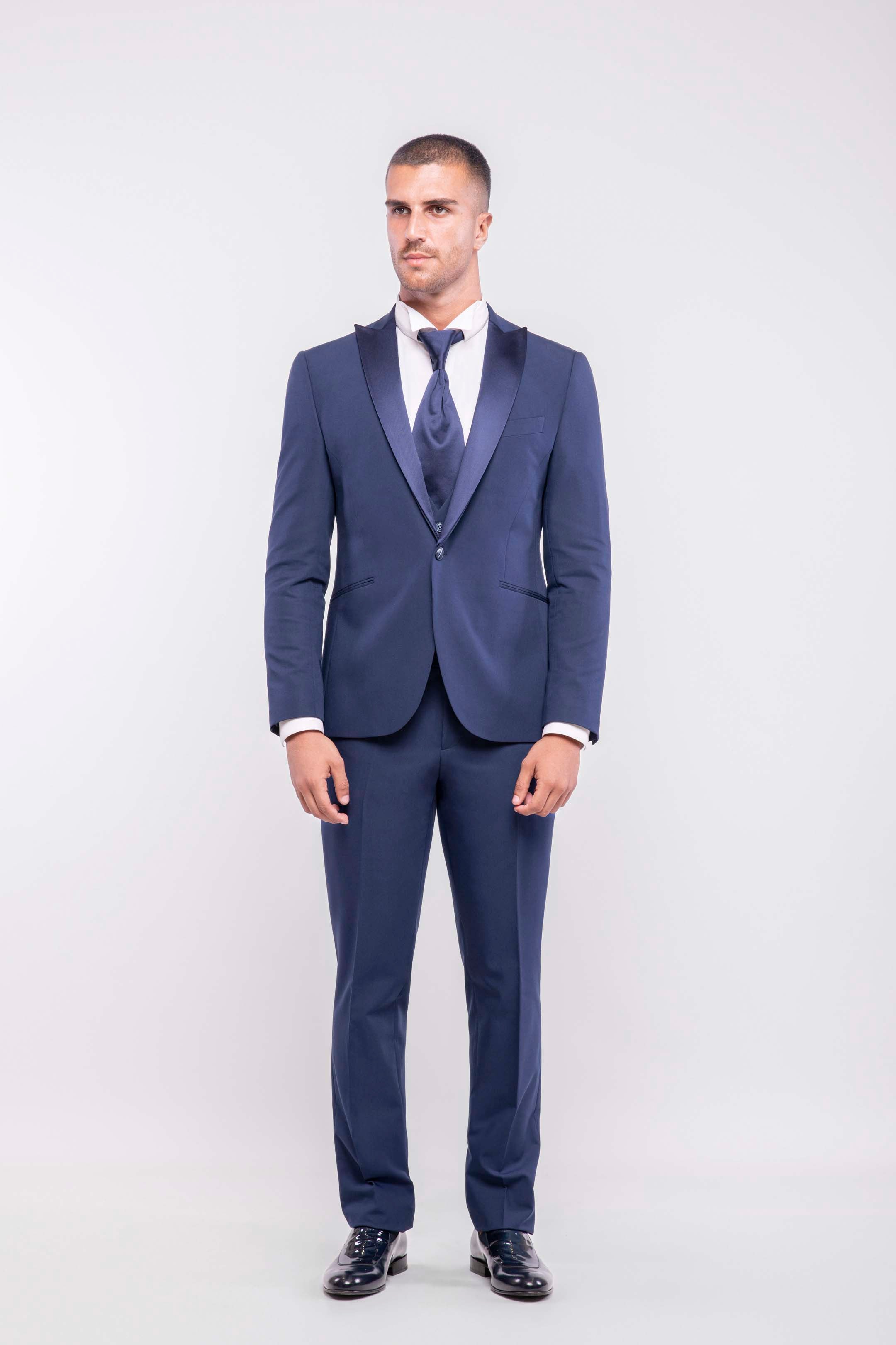 Abito Smoking "Bluemark" con collo a lancia in Raso blu